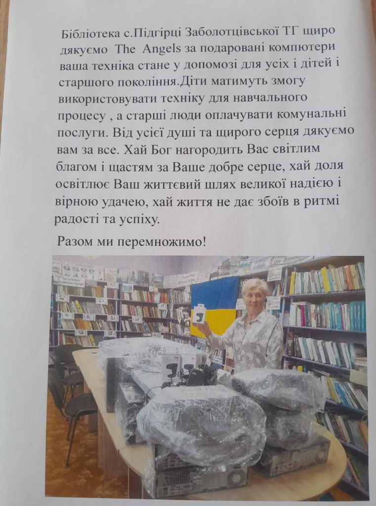 The Pidirishci Village Library extends its sincere thanks to the volunteer group The Angels for the donated computers.